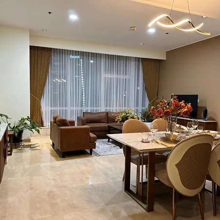 Luxury, Modern & Spacious Two Bedrooms Fully Furnished Apartment van 115 m^2 ligt in de wijk Jakarta Zuid in Jakarta, op ongeveer 2 km afstand van het Erasmus Huis. Het heeft een binnenzwembad met een sauna. Een bubbelbad, een sauna en een overdekt zwembad zijn beschikbaar in dit appartement, zodat gasten een meer sereen verblijf hebben.